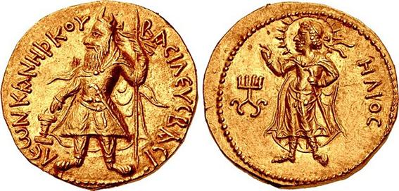 쿠샨 제국은 구취각의 증손자인 카니슈카 왕(재위 CE 127-150) 때 전성기를 맞았다. 현재 그의 상 일부가 남아 있는데 인도보다는 북방유목민의 모습을 하고 있다. 그의 모습을 새긴 금화도 주조되었는데 수염을 길게 기르고 창을 든 모습이다. 금화의 명문은 이전 박트리아인들이 사용하던 그리스 문자를 사용하였다. 왕을 뜻하는 단어로 그리스어인 ‘바실레우스’ 뿐 아니라 페르시아어인 ‘샤’를 사용하기도 하였다.