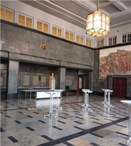 한 굽이 들어서니 대형 홀이 나온다. Aola(강당)이다. 하이데거가 이곳 대학에 교수로 취임하면서 또 총장에 부임하면서 기념 연설을 행했던 곳이기도 하다. 1928년 스승인 후설의 후임으로 이 대학 교수로 초빙된 하이데거는 「형이상학이란 무엇인가?」란 취임 강연을 하였다. 인간 본질이 무로의 초월에 있음을 밝히는 것이었다. 하이데거에 따르면 특정한 ‘무엇’에 대한 불안이 아니라 인간의 근본 기본으로서의 불안 속에서 존재자 전체는 지금까지의 친숙함에서 무차별함 혹은 ‘아무래도 상관없음’에로 밀려 나간다. 그 밀려나감에서, 그와 함께 ‘아무 것도 아님’(Kein), ‘무’(Nichts)가 우리에게 닥치며 머문다. 이것이 무의 본질, ‘무화’(Nichtung)이다. 이러한 무화에서 존재자는 “이제까지 가려져 있던 완전한 낯설음에서, 무에 대한-단적인 타자로서,” 곧 무가 아니고 오히려 존재하는 존재자로서 드러난다. 즉 존재자의 존재가 불안의 근거 위에서 무 안에 들어서, 무를 견디는 우리들 자신에게로 비은폐되는 것이다. 무는 존재를 가리는 베일이며 무를 향한 인간의 존재는 곧 존재의 진리로 나가 있음[실존; 탈자脫自]이다.